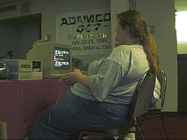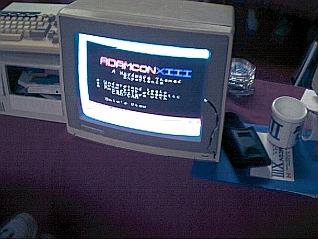![]() Dale's AdamCon XIII Themed Painting | Another of the Treasure Hunt challenges is to, using an Adam paint program, create an AdamCon XIII themed picture, then print it out. It turns out that Rich D forgot to bring the ribbon for the parallel printer that he had attached to one of the hands-on lab computers. Eventually brought my system into the lab and attached my Canon Bubblejet BJC-4300ex printer. It worked prefectly! That means that the Adam is compatible with any BCJ-4xxx series printer. |