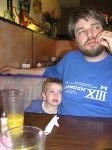 Jeffrey plays with the red hot chili pepper made by Jean |