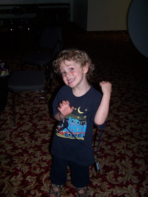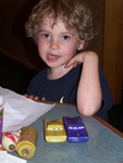 fri/100_3697.JPG Jeffrey poses with his toys from the resteraunt stops on the way to Chicago. |